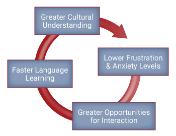 Language and culture cannot be separated. Improving skills in one creates opportunities to build skills in the other. This creates a positive cycle of increased opportunity, confidence and competency in culture and language development.